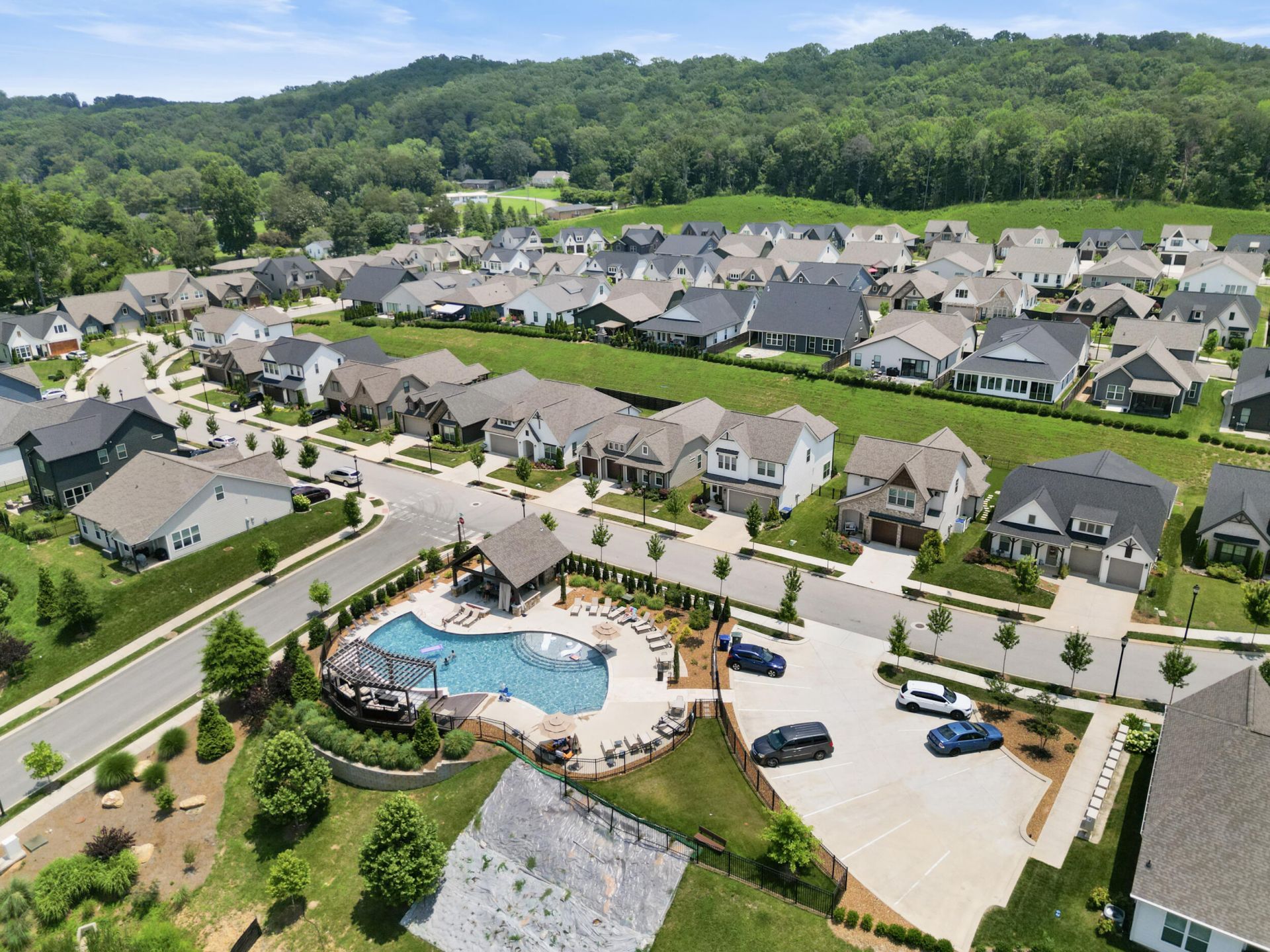 Welcome to this beautifully designed 3-bedroom, 2-bath French Tudor-inspired home, ideally located just minutes from downtown Chattanooga. Originally created by an interior stylist, the home showcases timeless architectural details and a cohesive designer aesthetic that feels both refined and enduring.The vaulted living room serves as a striking centerpiece, featuring shiplap walls, tongue-and-groove ceilings, and dramatic wood beams that create warmth and architectural interest. Thoughtful design elements continue throughout the home, including picture molding in the bedrooms and extensive board-and-batten accents that elevate each space.Many of the original designer-selected colors, finishes, and features have been carefully preserved, offering a curated look that balances elegance with livability. With approximately 2,400 square feet of well-appointed living space, the layout blends style and functionality with ease.The screened-in porch provides a peaceful extension of the living area and overlooks a private, fenced backyard, beautifully lined with rose bushes that add charm, privacy, and seasonal color?an ideal setting for both entertaining and quiet moments at home.Located in the Painted Ridge community, residents enjoy access to exclusive amenities including a pool, outdoor kitchen, and a neighborhood trailhead connecting to miles of scenic hiking and biking trails. The home also offers exceptional convenience, with Starbucks, gyms, Target, grocery stores, and shopping all within 5-7 minutes of your front door.This is a rare opportunity to own a thoughtfully designed home where timeless style, lifestyle amenities, and an exceptional location come together seamlessly.